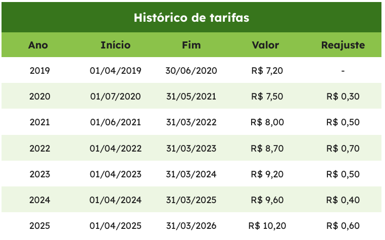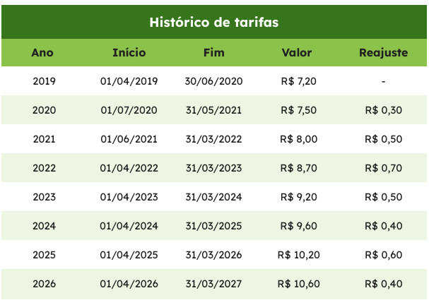 Histórico de Tarifas